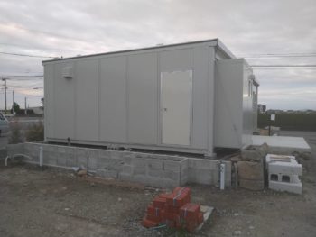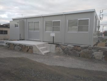 こちらが施工前。このプレハブ事務所に屋根をつけ、さらに隣に屋根付き車庫も制作します。